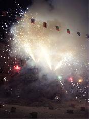 - A les 21:00 hores. Espectacular encessa de la foguera amb focs artificials acompanyada de volteig de campanes.